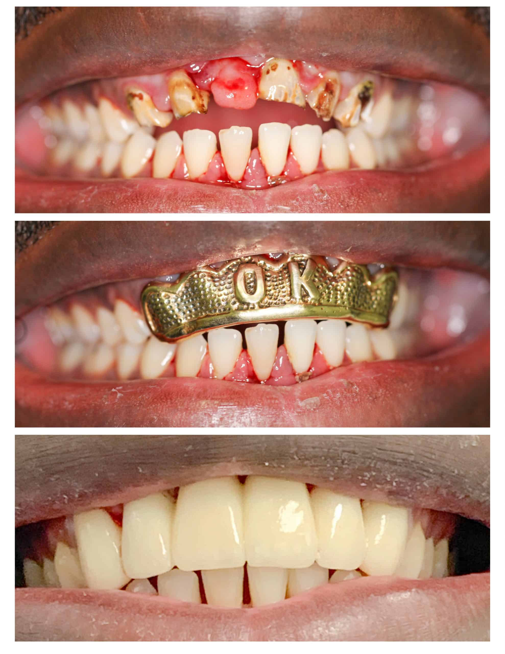 Complicated dental cases may require a combination of dental procedures for a successful outcome. To restore the complex cases shown below several types of dental procedures were performed including dental implants, porcelain veneers and crowns.